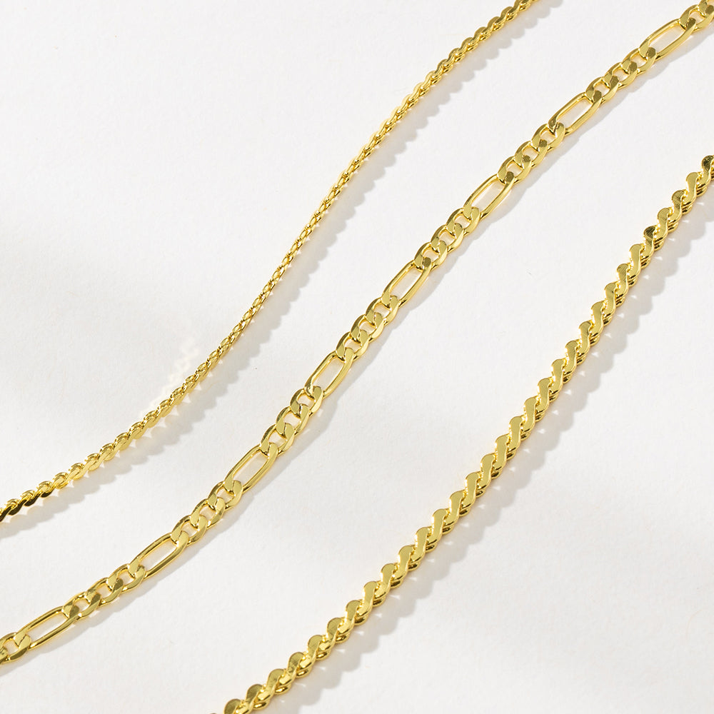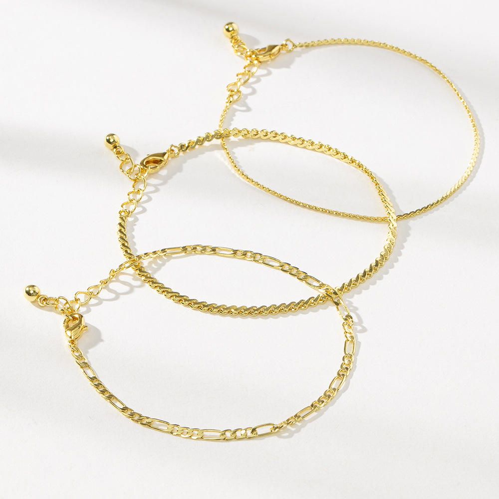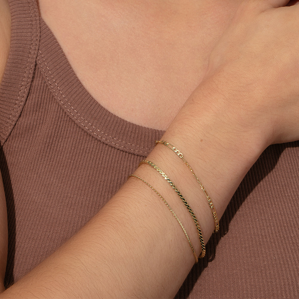 - Including a figaro chain and two herringbone chains, this set pairs well with other bracelets but also stuns on its own