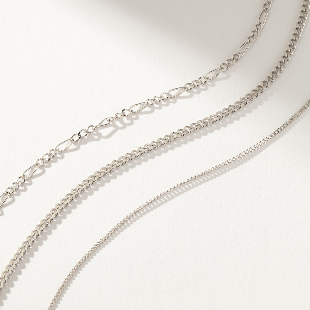 - This set of three Sterling Silver chains features a figaro chain and two herringbone chains