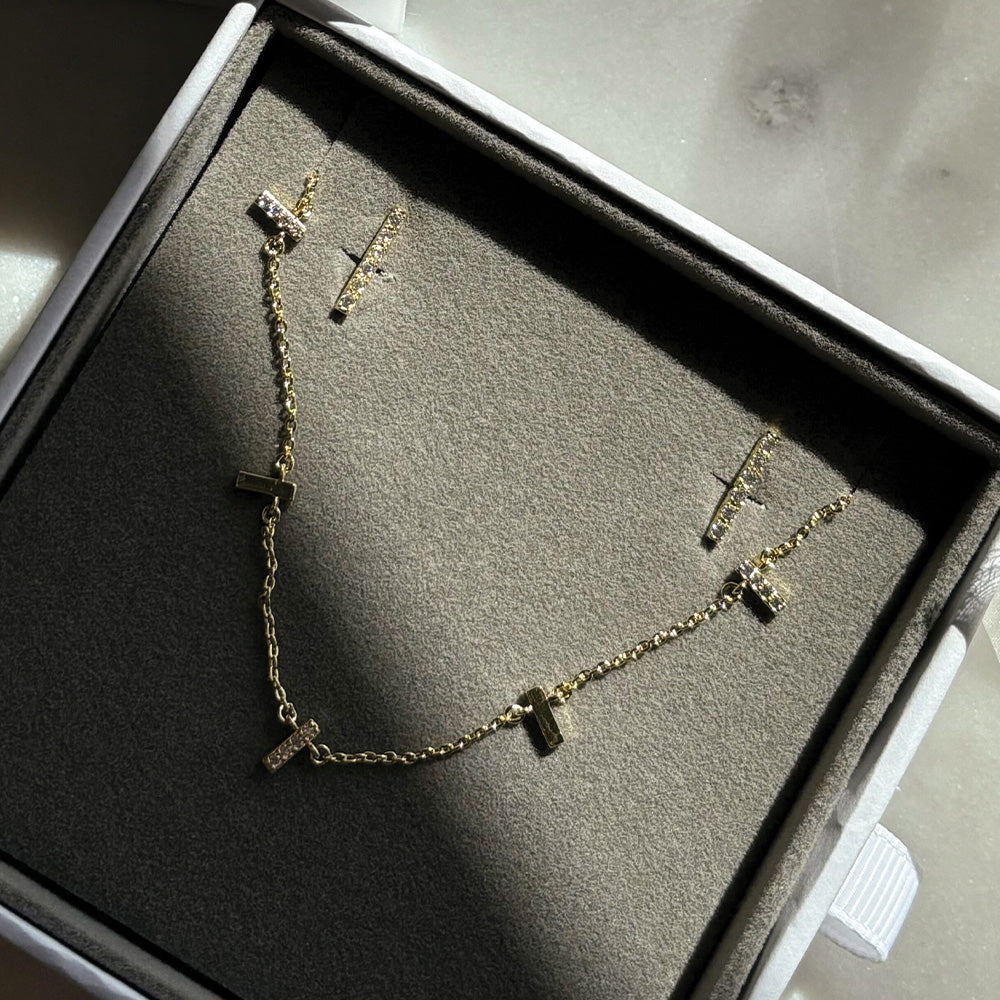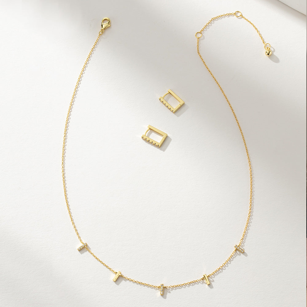 - Necklace is crafted from 14k gold-plated brass and cubic zirconia stones