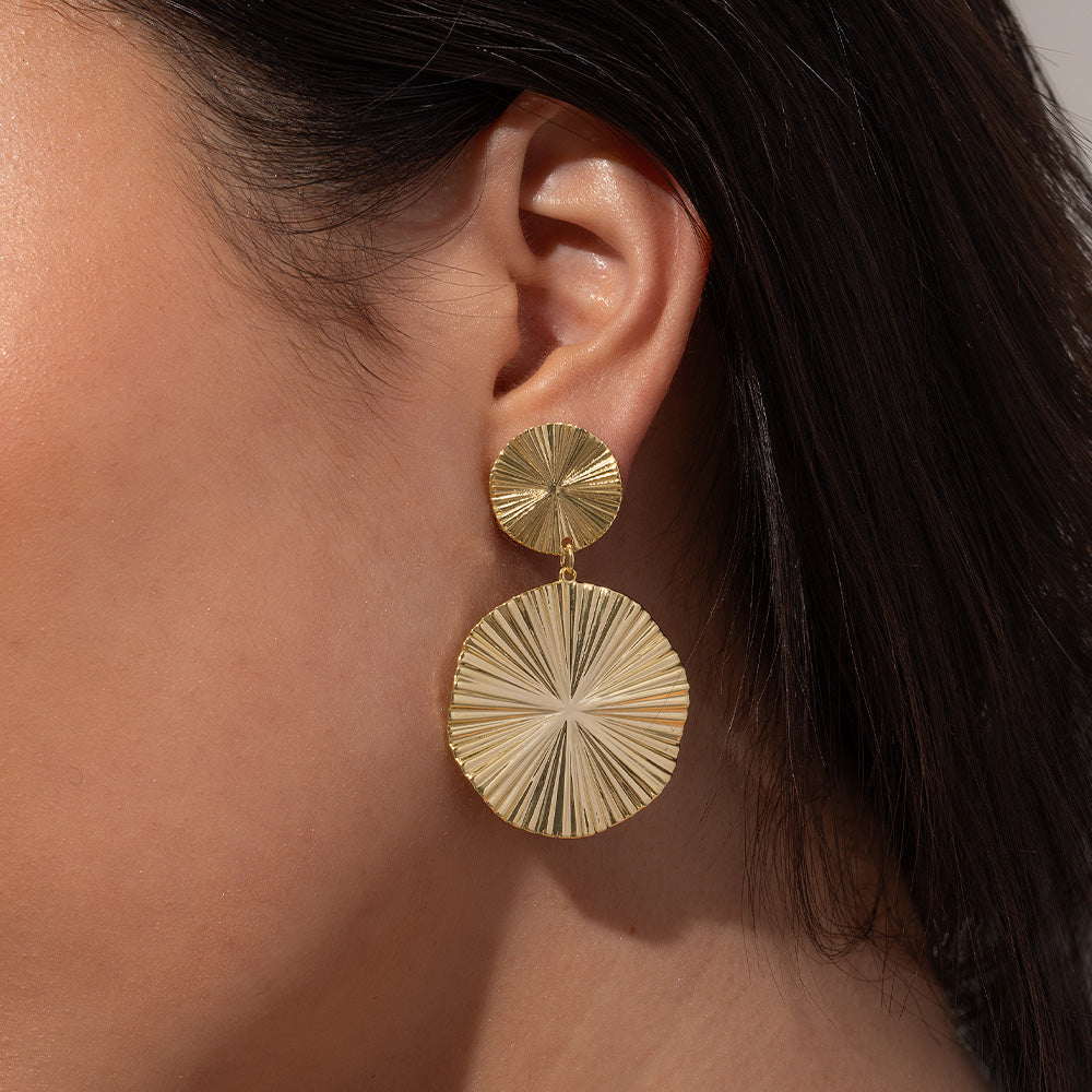 - Featuring a bold stud and dangle with ribbed detailing, these earrings are sure to turn heads