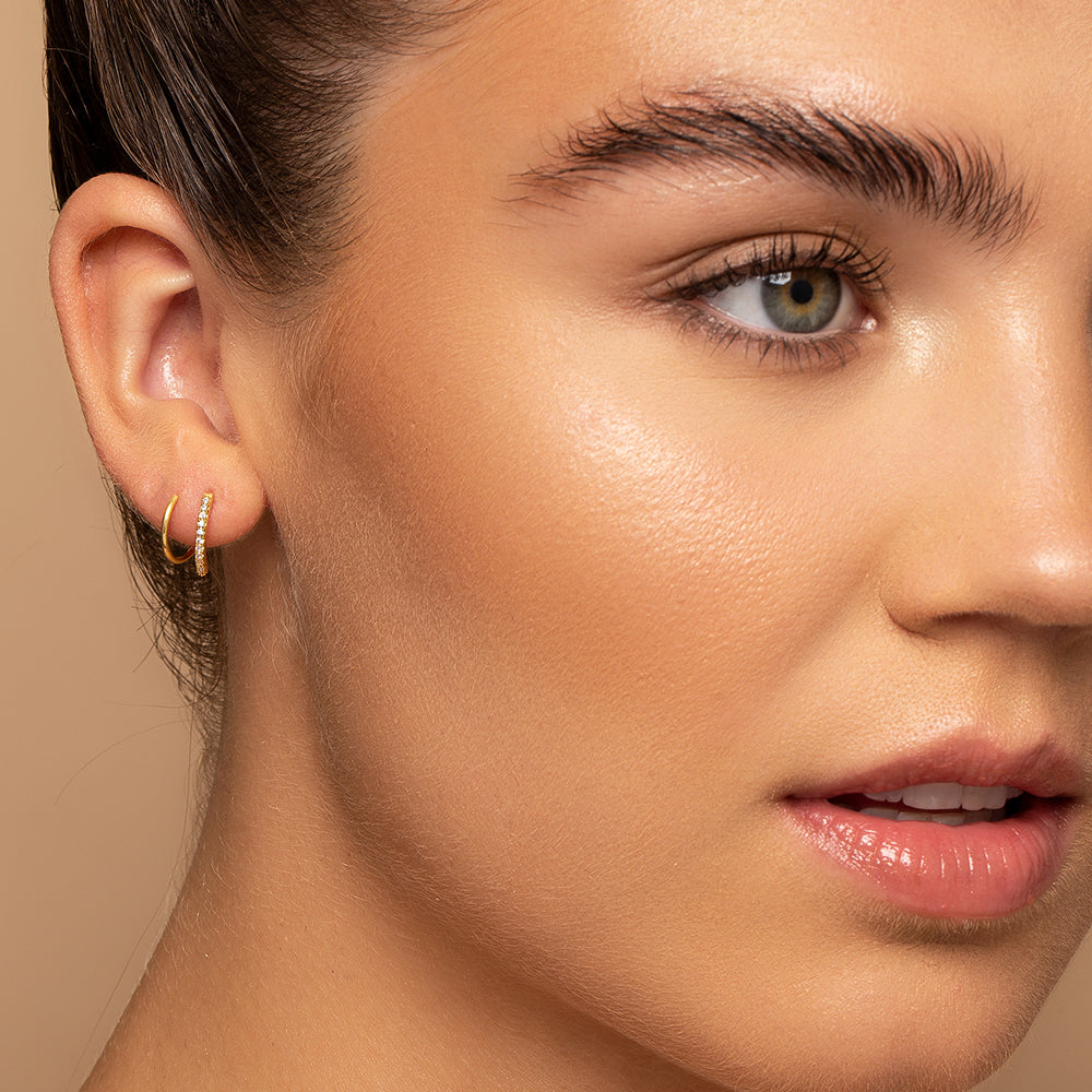 - Gold: crafted from 14k gold-plated brass and cubic zirconia stones