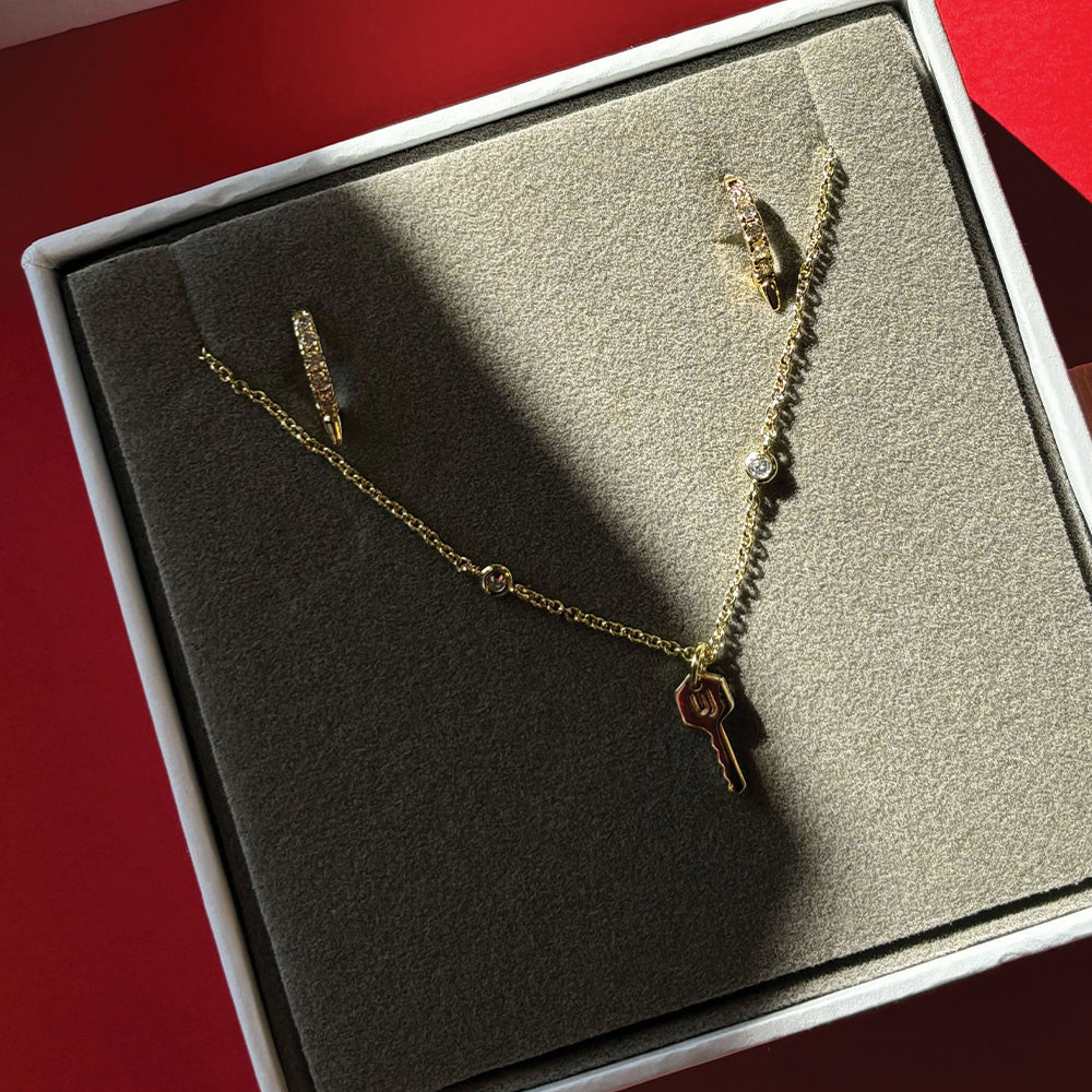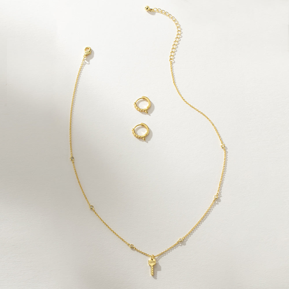 - Featuring the Angel Number Key Necklace and Untouchable Huggies